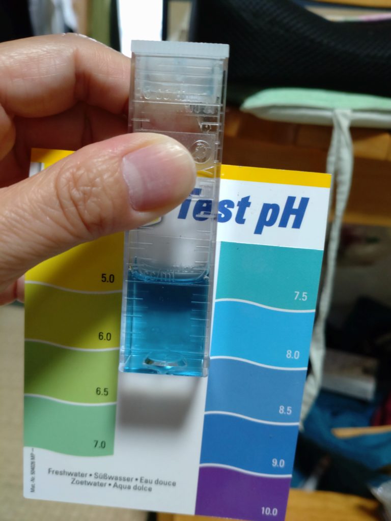 pHも調べて、現在の水槽内にあるのが、アンモニアかアンモニウムかを見極める必要があります。