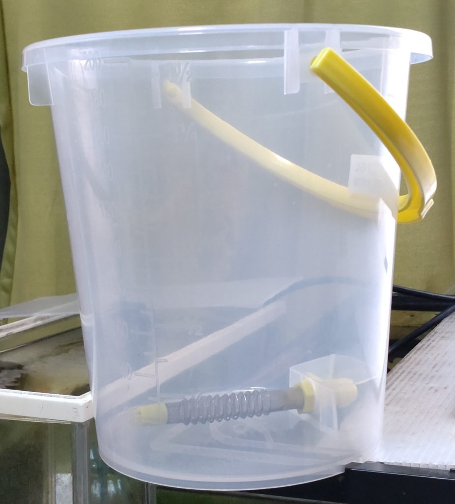 これは、何か?というと、単純に言えば、バケツの下にコックが付いていて、水を少しづつ投下できるというものです。