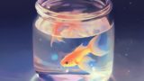 金魚の健康のために、私は錠剤のクロレラを与えています。